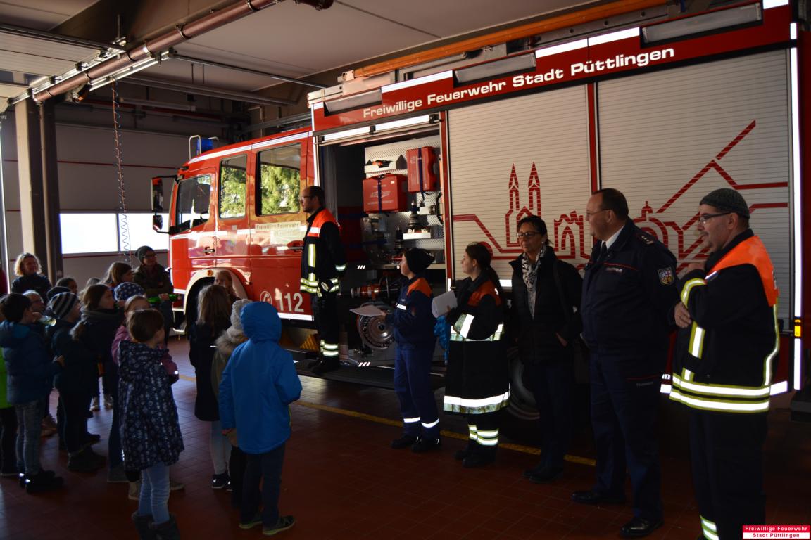 Im Rahmen des 50-jährigen Bestehens der Jugendfeuerwehr Püttlingen wurde in Zusammenarbeit mit der VVB (Vereinigte Volksbank) ein Malwettbewerb an den Püttlinger Grundschulen veranstaltet. Als Preis für die besten Bilder konnten die Teilnehmer einen Erlebnistag bei der Feuerwehr gewinnen. Die Jury, die die besten Bilder auswählen musste, hatte keine leichte Aufgabe. Es waren sehr viele schöne Bilder dabei. Trotz allem musste die Jury, bestehend aus dem Leiter der Püttlinger Filiale der VVB, Herrn Sebastian Fritz, Frau Sandra Natterer und dem Püttlinger Jugendwart Carsten Münch eine Auswahl treffen. Insgesamt wurden 32 Teilnehmer für ihre Arbeit prämiert, 22 hatten und konnten einen tollen Tag bei der Feuerwehr erleben. Hier konnten die Jungen und Mädchen viel Neues erfahren und einen Einblick in die Feuerwehrarbeit gewinnen. In mehrere Gruppen aufgeteilt besichtigten die Gewinner das Feuerwehrgerätehaus und die Fahrzeughalle, in der die Einsatzfahrzeuge untergestellt sind. Hierbei wurden ihnen die Aufgaben der einzelnen Fahrzeuge sowie deren Beladung erklärt. Jeder hatte die Möglichkeit, sich die Gerätschaften näher anzusehen und sie zum Teil auch selbst auszuprobieren. Auch die Feuerwehrschutzkleidung wurde den Teilnehmern gezeigt und erläutert. Auch hier hatte jeder die Möglichkeit, die Schutzkleidung anzuprobieren und sich so in eine Feuerwehrfrau / -mann zu verwandeln. Am Ende des Erlebnistages konnte noch jeder, der wollte, in den Korb der Drehleiter steigen und sich Püttlingen von oben ansehen. Bevor sich jedoch alle auf den Heimweg machten, bedankten sich Püttlingens Wehrführer Thomas Prinz und Stadtjugendwart Harald Ströhle bei allen Teilnehmern für ihr reges Interesse. „Ich würde mich freuen, wenn wir bei Euch das Interesse an der Feuerwehrarbeit geweckt haben und der ein oder andere dadurch den Weg zur Feuerwehr findet.“, so Wehrführer Thomas Prinz. Zur Erinnerung an den Erlebnistag gab es noch für alle Gewinner eine Teilnahmeurkunde sowie ein Schlüsselband. Ein herzliches Dankeschön geht noch an die VVB, die die Feuerwehr bei dem Erlebnistag unterstützt hat.