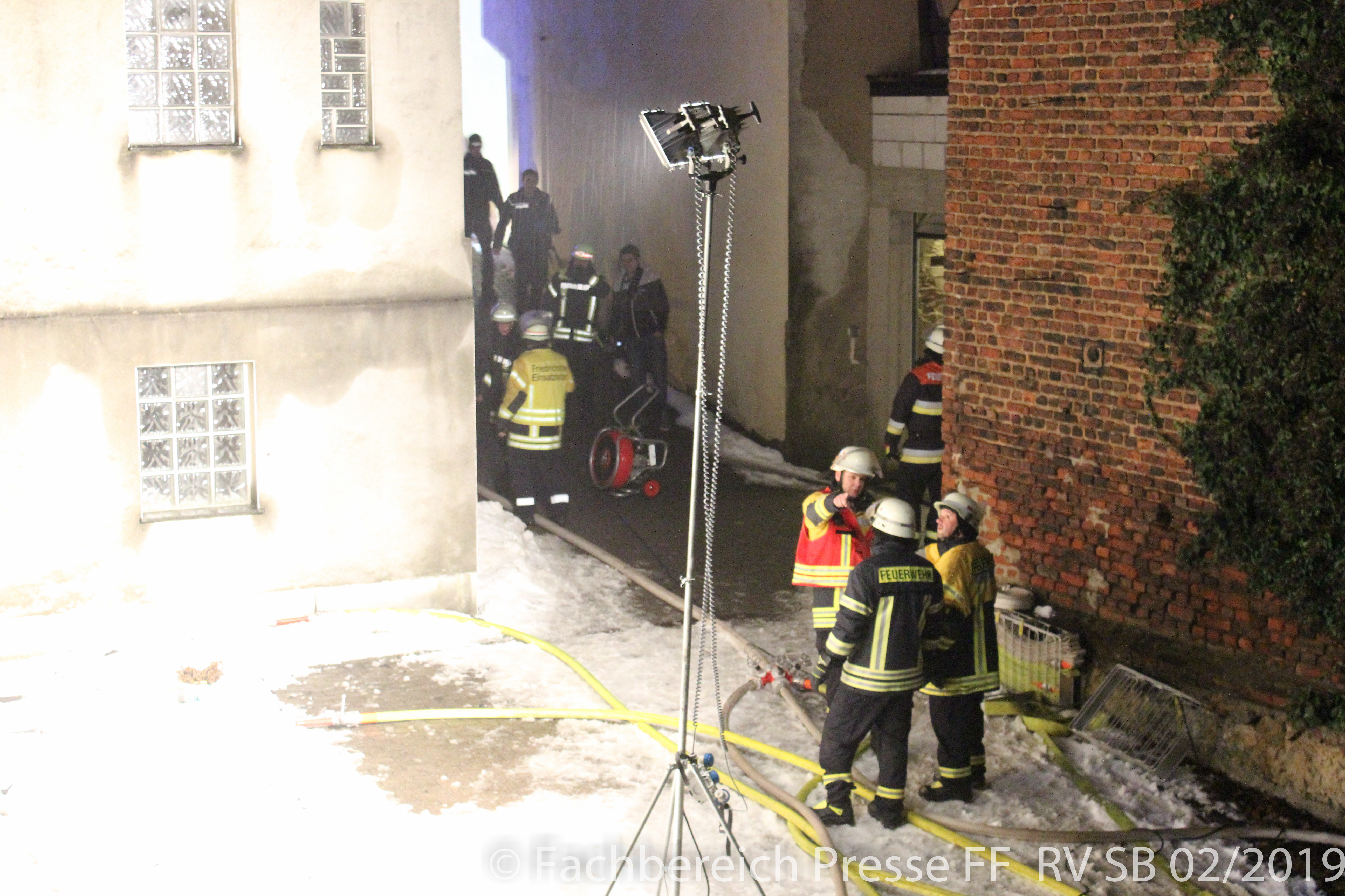 Am Freitagabend (01.02.2019) um 22:14 Uhr, wird die Feuerwehr Friedrichsthal zu einem Wohnungsbrand mit Menschenrettung in die Illinger Straße alarmiert. Bereits beim Aussteigen aus dem erstankommenden Fahrzeug, hören die Helfer Hilferufe, die aus dem Hinterhof kommen. Eine 21-jährige Frau steht auf einer Garage, von wo sie mit Leitern heruntergebracht und dem bereitstehenden Rettungsdienst übergeben wird. Nach einer kurzen Befragung kann diese angeben, dass sich niemand mehr in der brennenden Wohnung befindet, wonach sie auf Verdacht einer Rauchgasvergiftung in ein Krankenhaus eingeliefert wird.