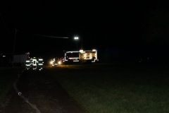 Und das Übungsscenario hatte es in sich. Es ging um einen Vegetationsbrand (kleiner Wald) in unmittelbarer Nähe eines Sendemastes. Das Übergreifen des Brandes musste verhindert werden. Zur Löschwasserversorgung wurde ein Pendelverkehr mit Fahrzeugen, die über einen Löschwassertank verfügen, eingerichtet. Ferner war die weitläufige Einsatzstelle zu beleuchten. Erschwerend kam hinzu, dass es vor der Übung ergiebige Regenfälle gab, die das Gelände matschig machten.