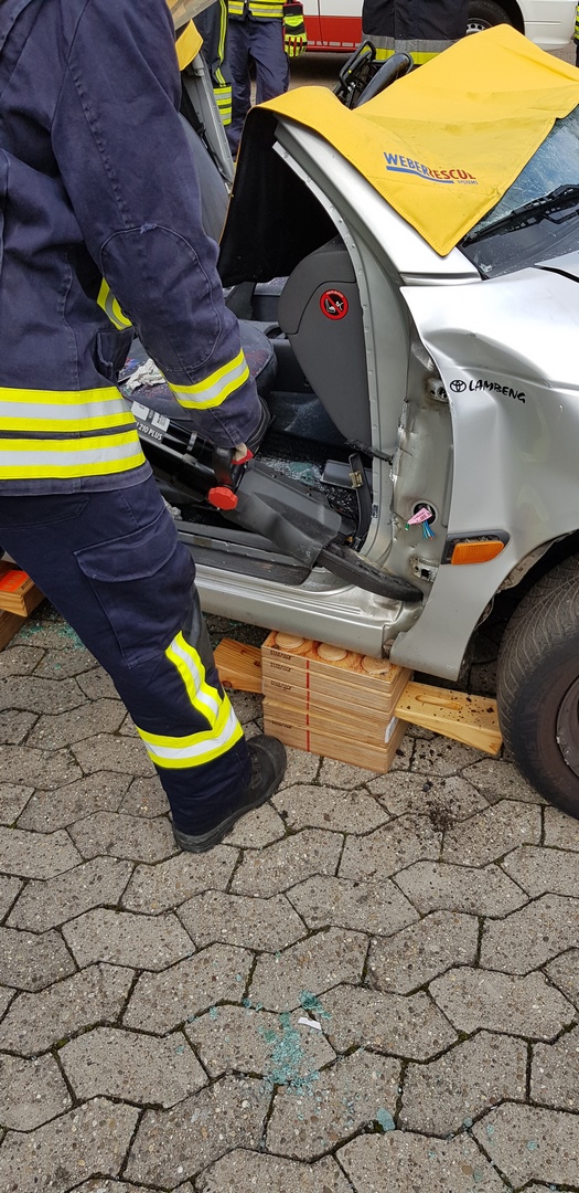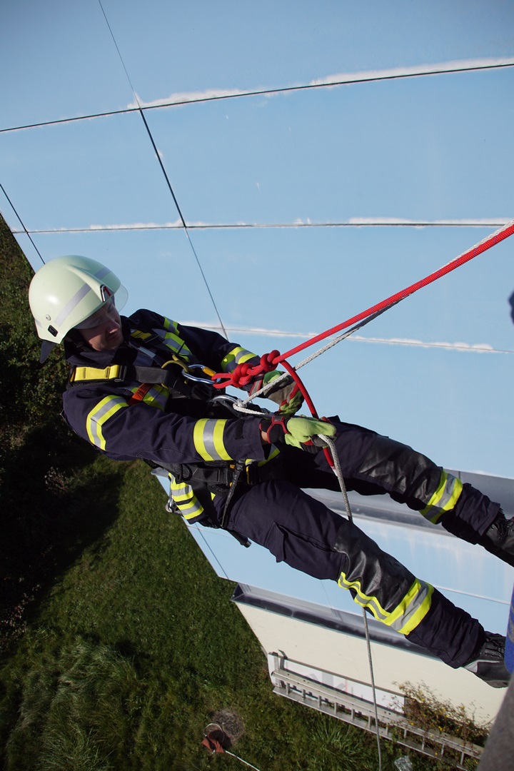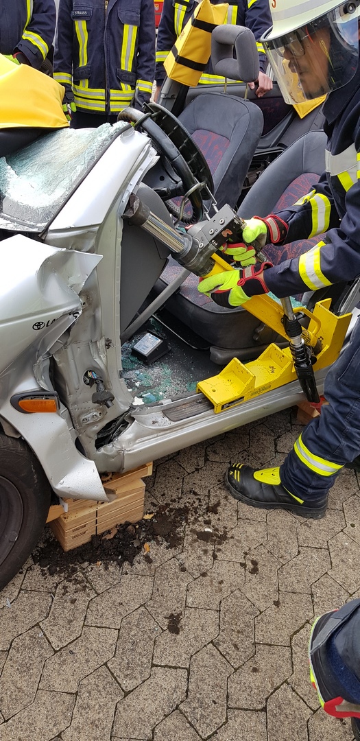 Doch der Lehrgang beinhaltet nicht nur das Abseilen aus luftiger Höhe, sondern auch Bereiche wie die Technische Hilfeleistung. Bei diesem Teil wurde unter anderem ein Auto, das zur Verschrottung vorgesehen war, zerlegt.