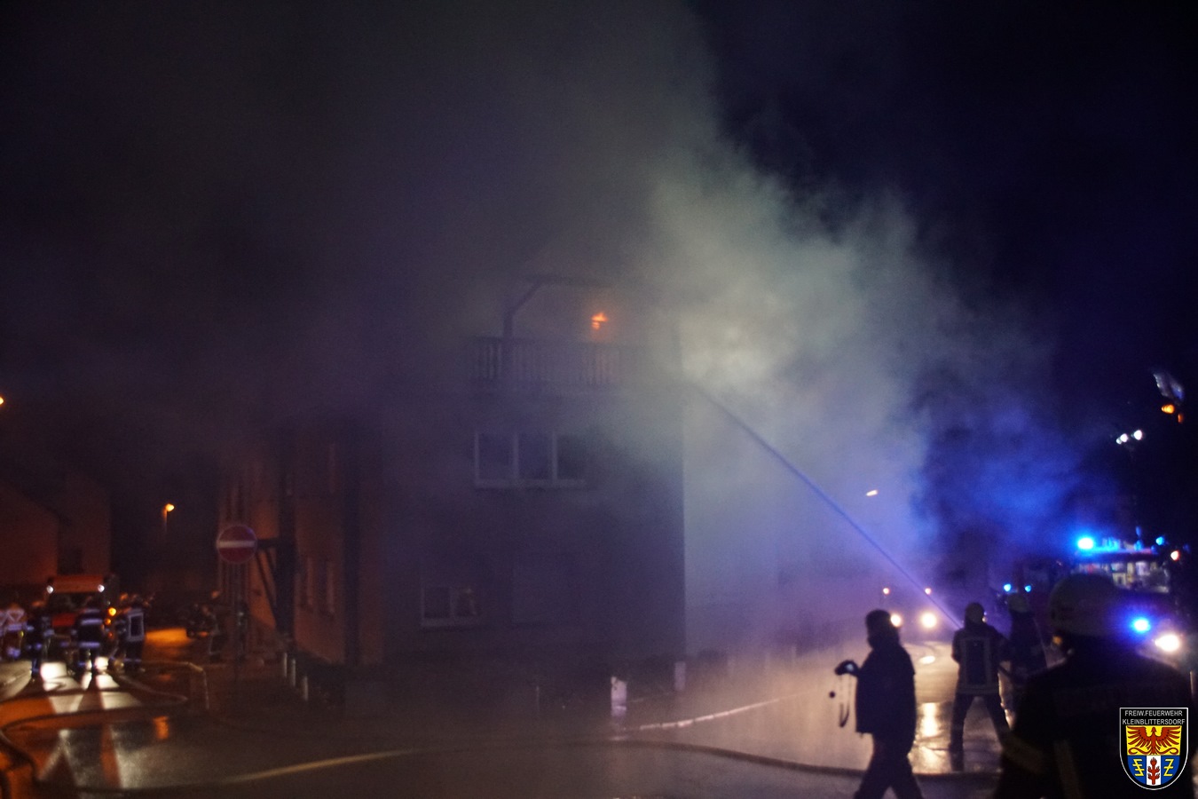 In der Nacht zum Mittwoch, 3.4.19, kurz nach 3 Uhr, wurde die Feuerwehr Kleinblittersdorf zu einem Wohnhausbrand gerufen. Beim Eintreffen der Einsatzkräfte stand ein Balkon im Vollbrand und die Flammen hatten schon auf eine Wohnung in dem Gebäude mit sechs Wohnungen übergegriffen. Sie schlugen auch aus dem Dach. In dem Haus befanden sich zu diesem Zeitpunkt keine Personen mehr. Der Brand wurde von Trupps mit Atemschutz im Innenangriff bekämpft. Von außen wurden die Maßnahmen mit weiteren Strahlrohren unterstützt. Die Berufsfeuerwehr Saarbrücken rückte mit einer Drehleiter an, die von einem Führungsdienst begleitet wurde. Mit Hilfe der Drehleiter wurde die Dachhaut geöffnet um Glutnester zu löschen. Der Brand konnte auf die eine Wohnung begrenzt werden. Zwei Wohnungen sind unbewohnbar.